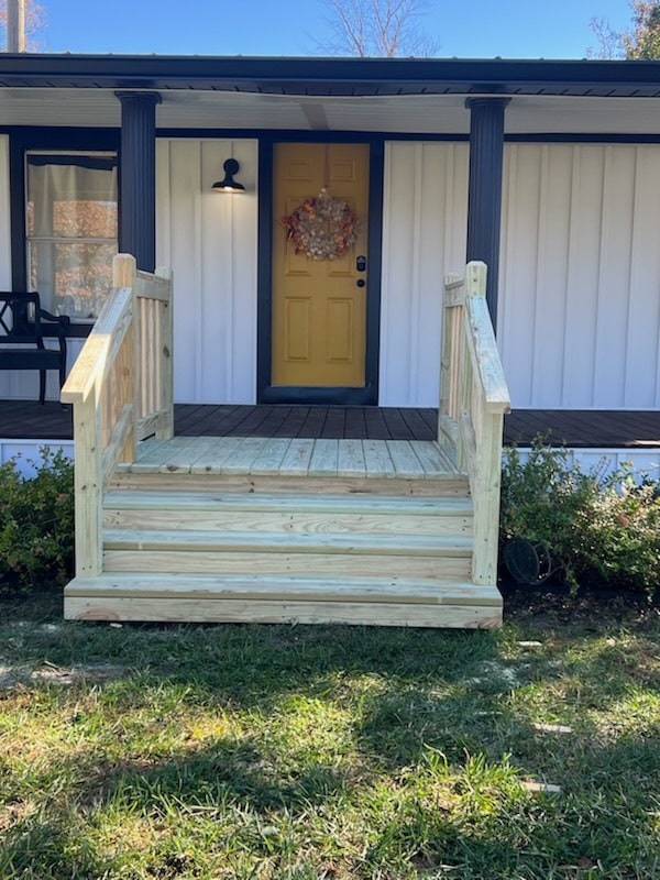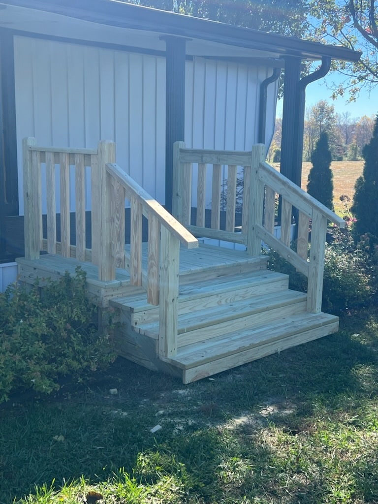 This 4×6 Treated Deck in Wooten, KY features durable treated lumber and added step risers for easy access. Built for everyday reliability, it provides a sturdy, practical entryway upgrade for the home.