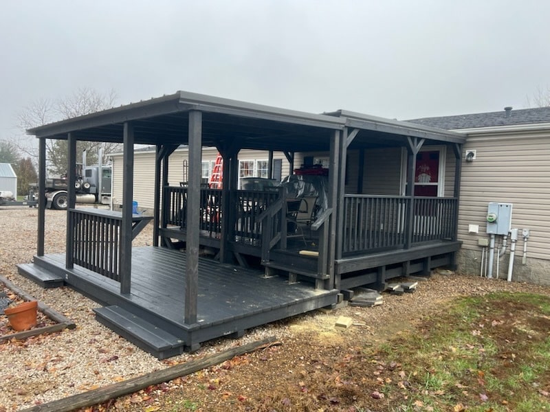 We installed this weathered gray porch in Philpot, KY, complete with sturdy wood framing and a metal roof. The finished structure brings a practical, attractive addition to the home’s exterior.