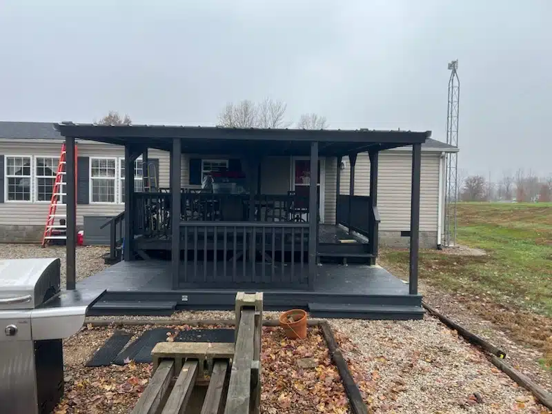 We installed this weathered gray porch in Philpot, KY, complete with sturdy wood framing and a metal roof. The finished structure brings a practical, attractive addition to the home’s exterior.